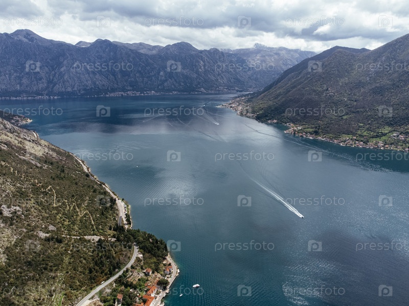 Вид с беспилотника на старый город Пераста в заливе Котор, Черногория