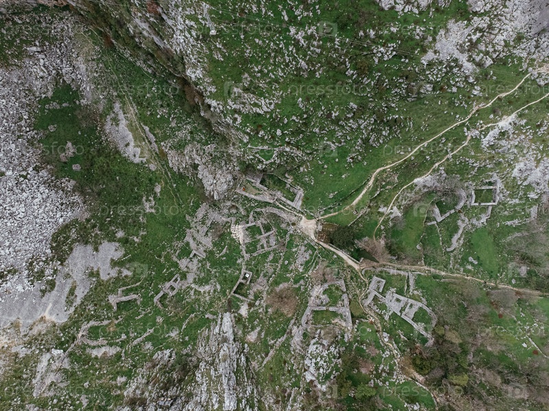 Вид с воздуха горной serpentine дороги в Которе, Черногория