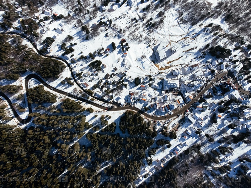 Горная деревня недалеко от горнолыжного курорта Копаоник, Сербия. вид с беспилотника сверху