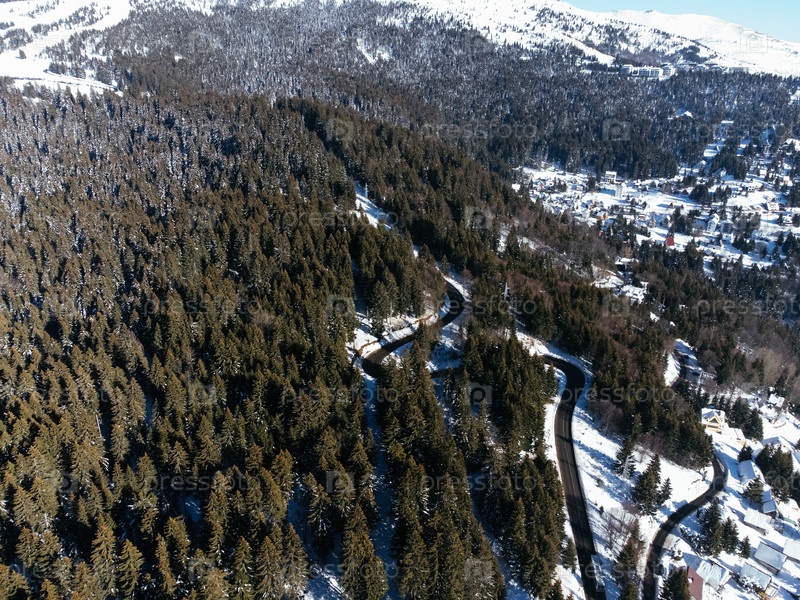 Горная дорога недалеко от горнолыжного курорта Копаоник, Сербия. вид с беспилотника сверху