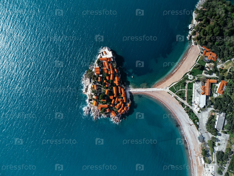 Вид с воздуха на остров Святого Стефана - отель . Черногория, Европа