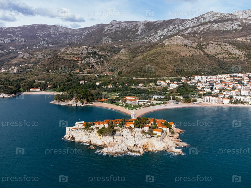 Вид с воздуха на остров Святого Стефана - отель . Черногория, Европа