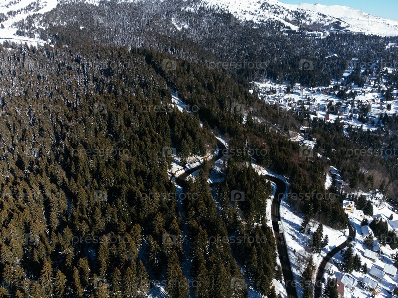 Горная дорога недалеко от горнолыжного курорта Копаоник, Сербия. вид с беспилотника сверху