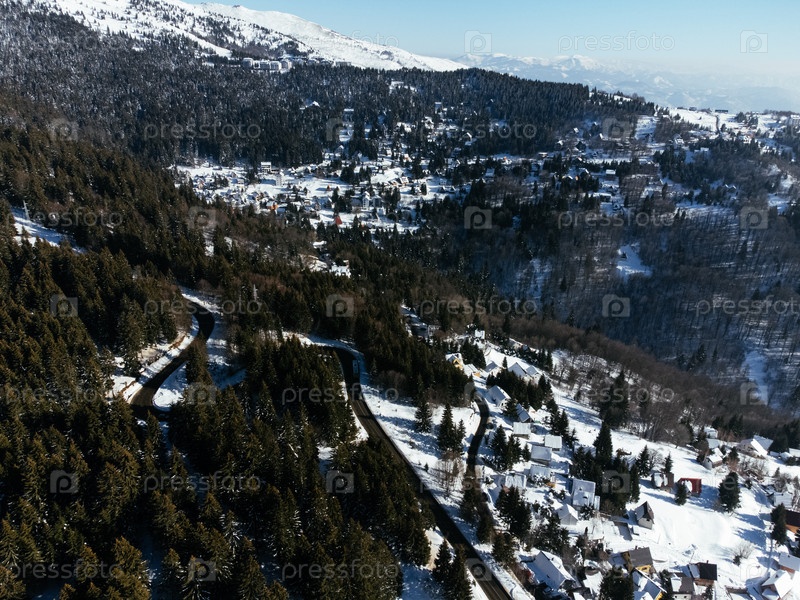 Вид с дронов горной деревни недалеко от горнолыжного курорта Копаоник, Сербия