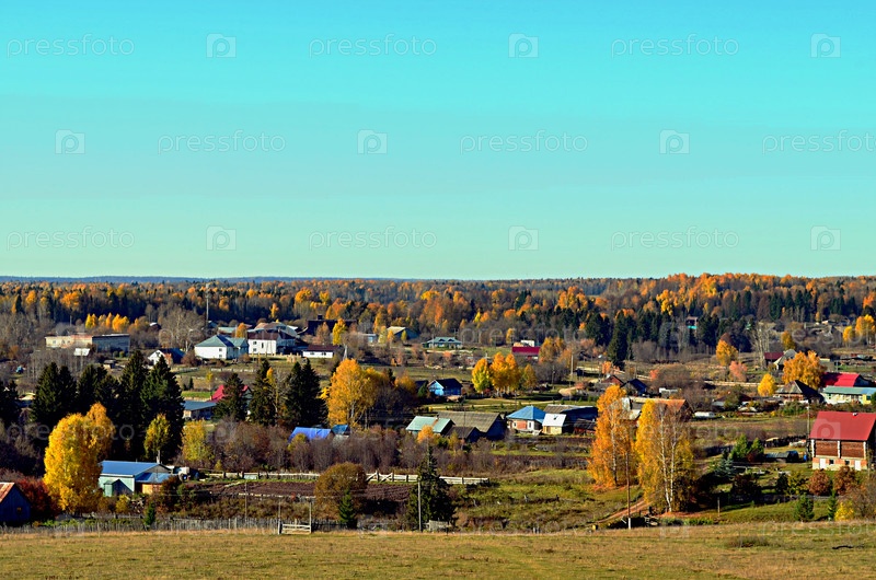 Осенний пейзаж. Вид на село с высоты. село Сосновка, Ординский район, Пермский край