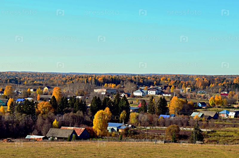 Осенний пейзаж. Вид на село с высоты. село Сосновка, Ординский район, Пермский край