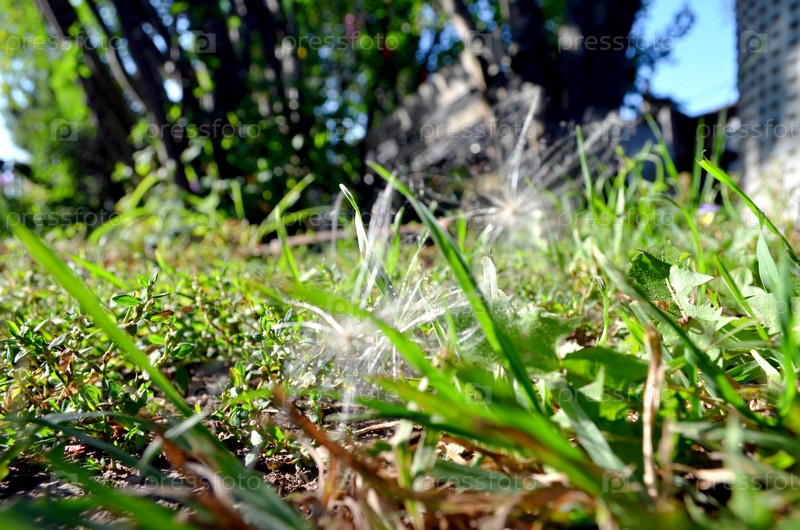 Осенний пейзаж. Пушистые семена осота в траве