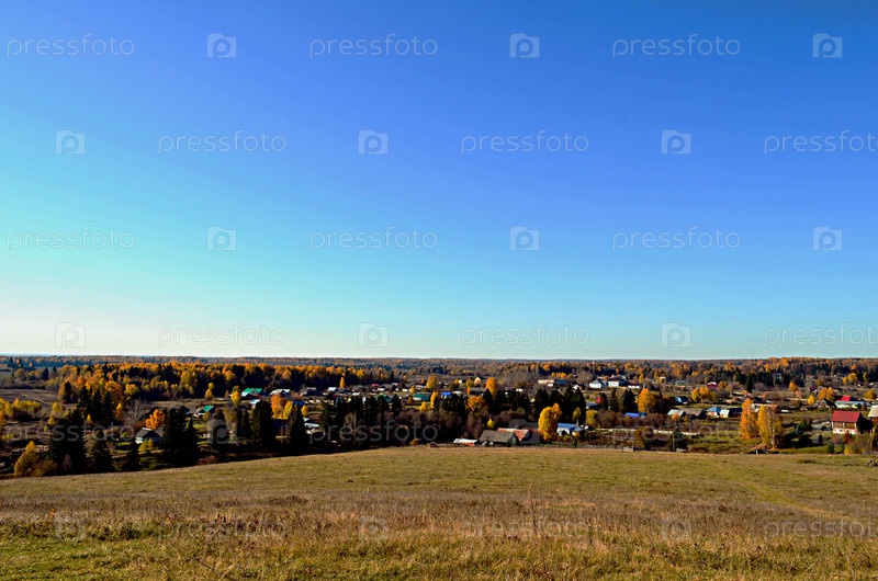 Осенний пейзаж. Вид на село с высоты. село Сосновка, Ординский район, Пермский край