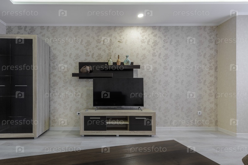 Современный интерьер гостиной Studio Living Room с телевизором и гардеробом