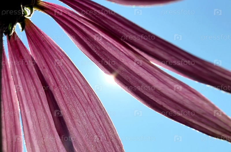 Лепестки розовой эхинацеи крупным планом на фоне голубого неба
