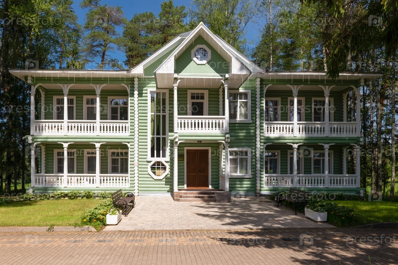 ТЕТКОВО, Тверская область, РОССИЯ 1 июля 2025 года: Сосновое здание (коттедж No3) оздоровительного комплекса "Тетково"