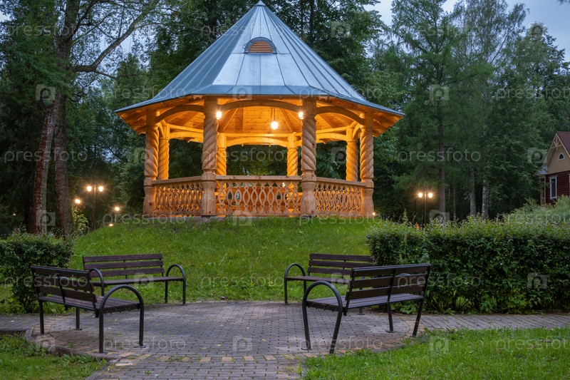 ТЕТКОВО, Тверская область, РОССИЯ 01 июля 2025 года: Центральная беседка на территории оздоровительного комплекса "Тетково"