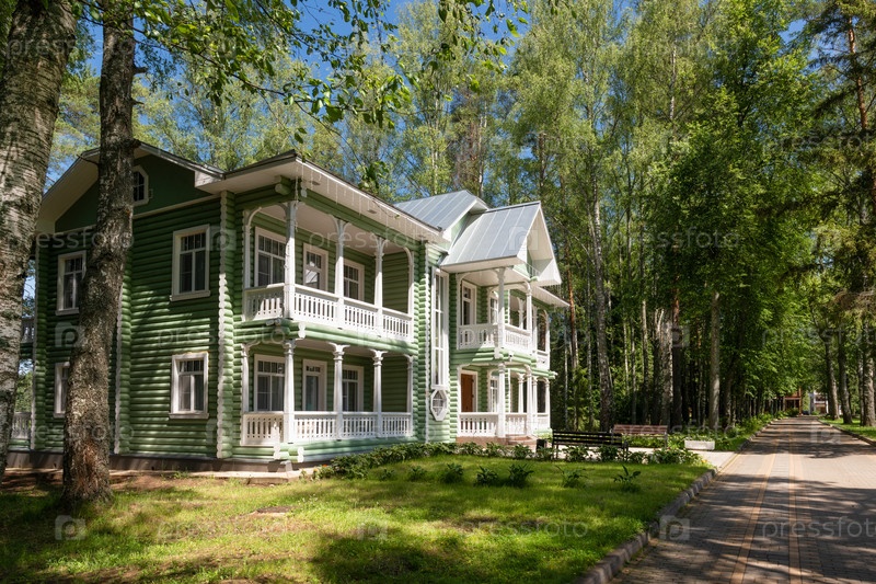 ТЕТКОВО, Тверская область, РОССИЯ 1 июля 2025 года: Сосновое здание (коттедж No3) оздоровительного комплекса "Тетково"