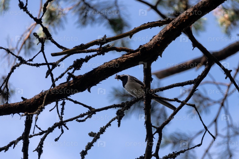 Вагтейл с насекомым в клюве - это небольшая певчая птица из ордена пассирин, семейства вагтейлов