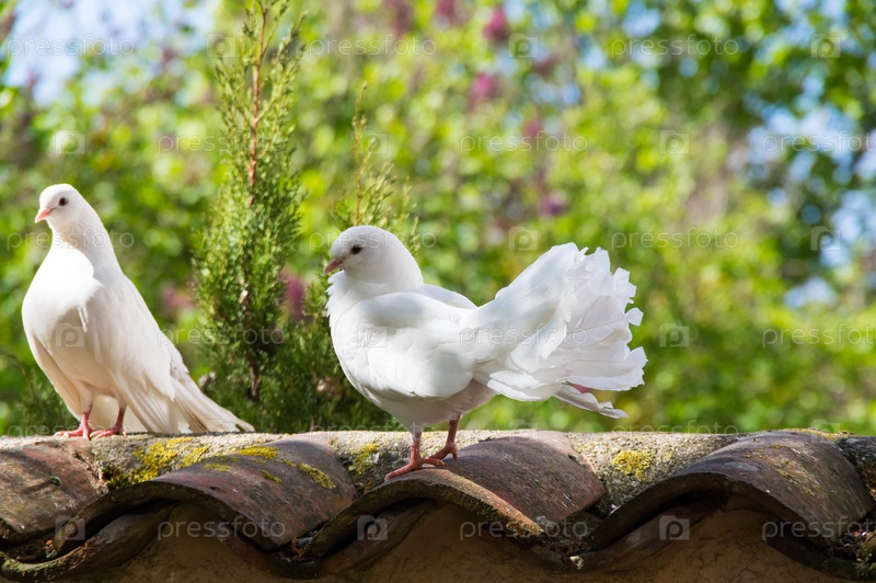 Белые голуби в саду