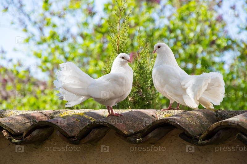 Белые голуби в саду