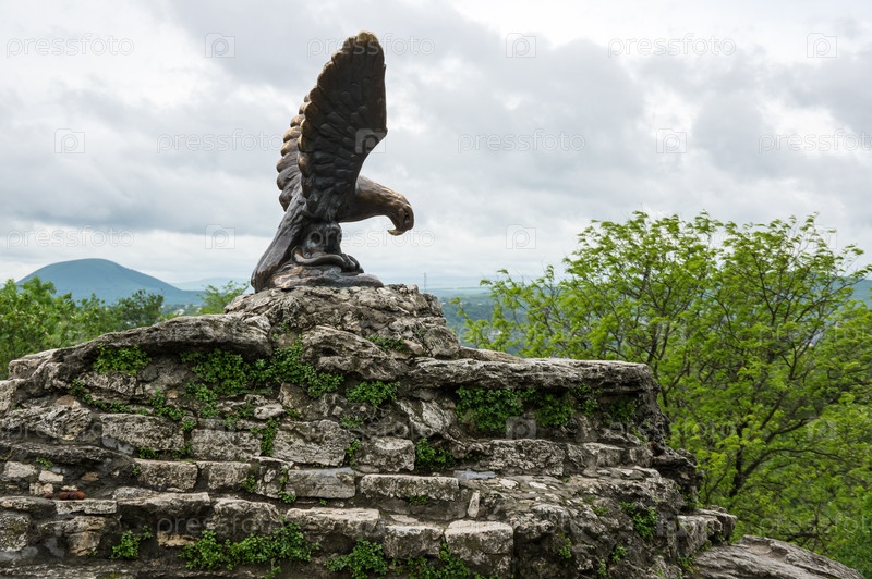 Бронзовая скульптура орла, борющегося со змеей на горе Машук