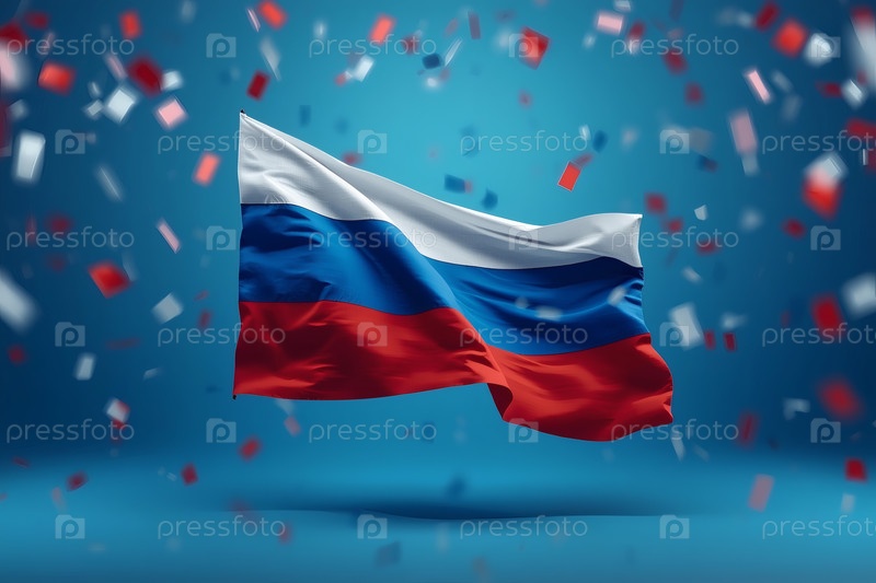 Концепция празднования Дня России 12 июня Государственный флаг Российской Федерации.Русский триколор с красочными конфетти