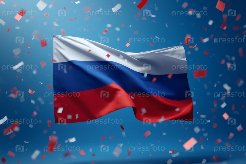 Концепция празднования Дня России 12 июня Государственный флаг Российской Федерации.Русский триколор с красочными конфетти