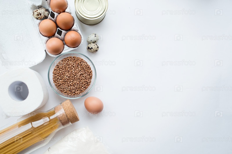 Продовольственные поставки кризисные запасы продовольствия на период карантинной изоляции.Саннированная пища, макароны, яйца, гречка,