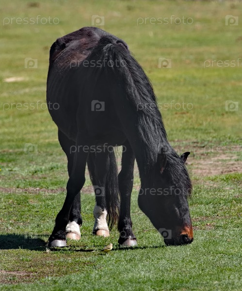 Россия. Горный Алтай. Лошади мирно пасутся на свободных пастбищах недалеко от села Турочак