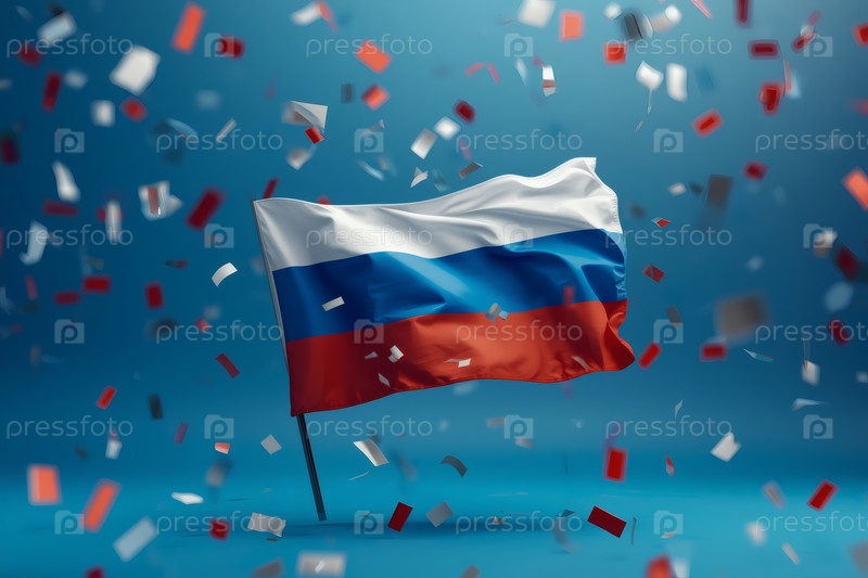 Концепция празднования Дня России 12 июня.Государственный флаг Российской Федерации.Русский триколор с красочными конфетти