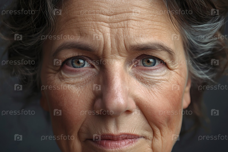 Близкий план седой пожилой женщины с морщиной на коже