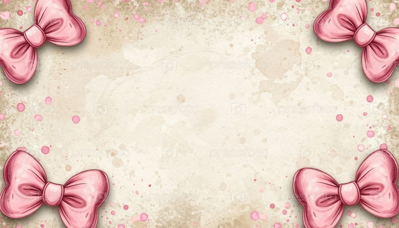 Винтажный карточный фон с розовыми луками и doodles для объявления о рождении девочки