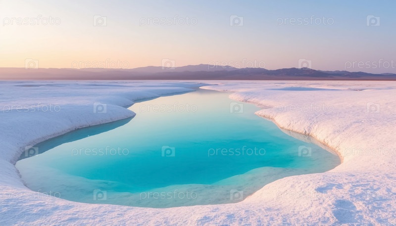 Пастельный пейзаж лазурного соленого озера в пустыне