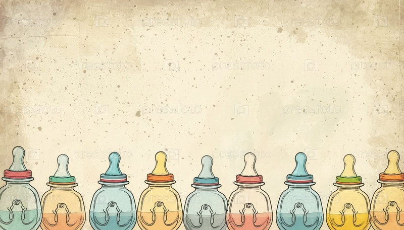Grunge aged background with baby doodle рисунок бутылок с соску