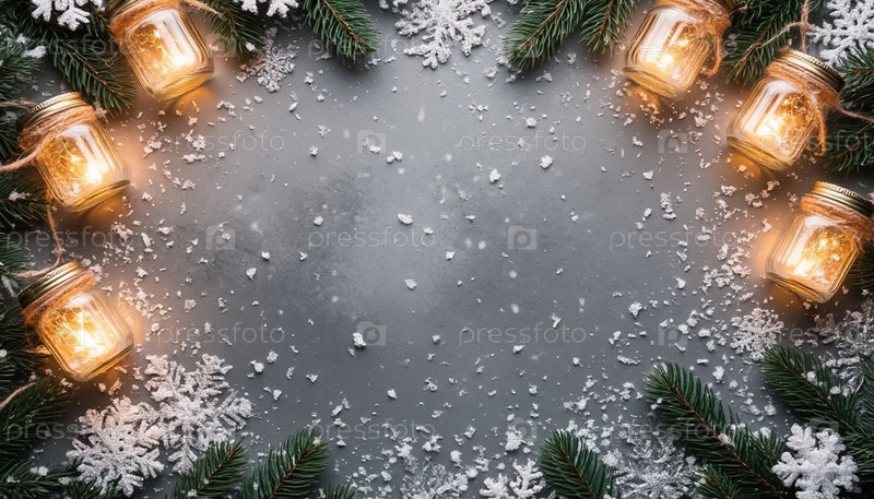Рождественские фонари в каменных банках и фоне с копировальным пространством