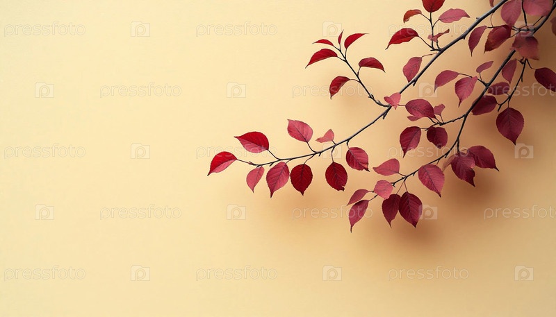 Минималистский желтый фон стены с красной ветвью на стороне