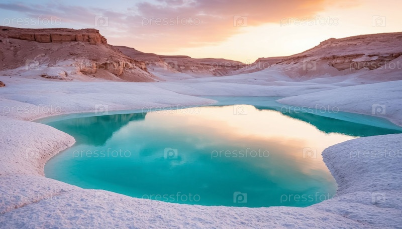 Пастельный пейзаж лазурного соленого озера в пустыне