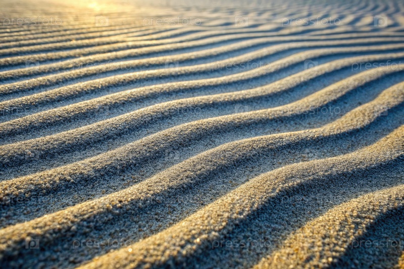 Рипплированная песчаная текстура на закате солнца на пляже