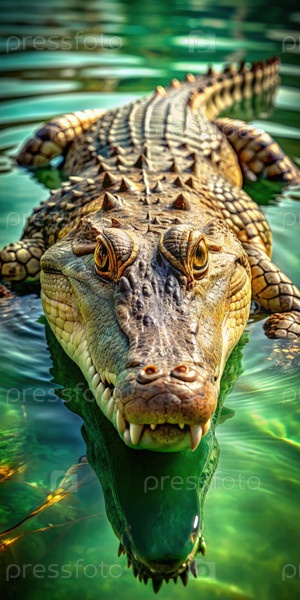 Большой аллигатор плавает в водоеме. генеративный большой ИИ