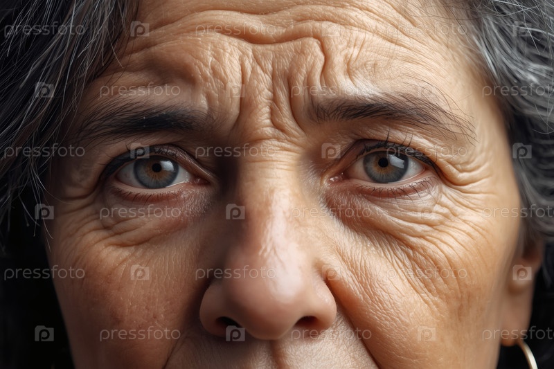 Близкий план седой пожилой женщины с морщиной на коже