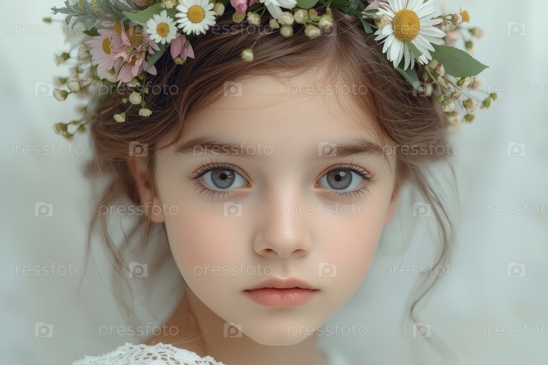 День семьи, любви и верности - портрет красивой маленькой девочки с венком ромашек на голове