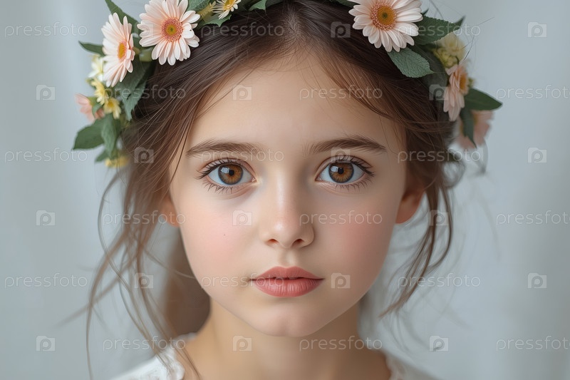 День семьи, любви и верности - портрет красивой маленькой девочки с венком ромашек на голове