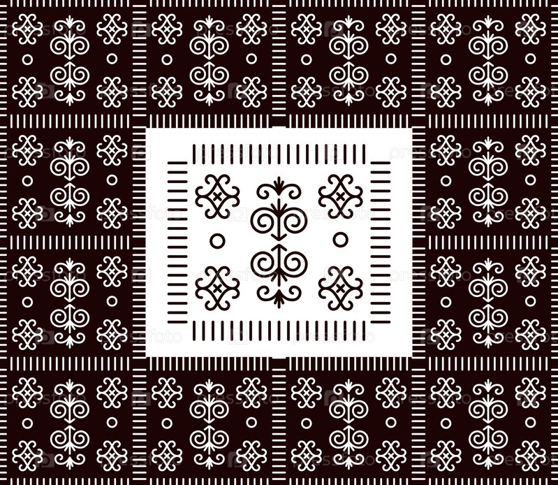 Бесшовный векторный черно-белый рисунок в народном стиле (Словакия, Чичмания)