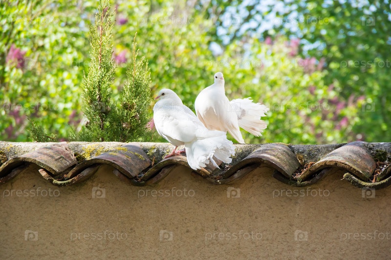 Белые голуби в саду