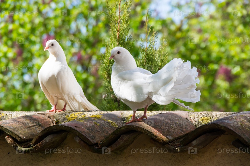 Белые голуби в саду