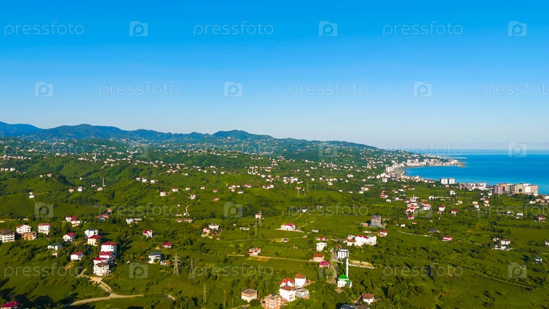 Ардешен, Турция. Панорама зеленых гор. Долина реки Фиртина. Солнечное утро, Aerial View