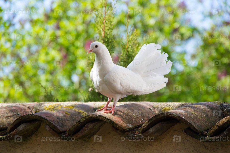 Белые голуби в саду