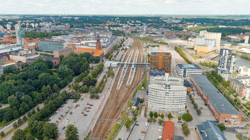 Вастерас, Швеция. Железнодорожный вокзал Вестероса. Центральная часть города. Летний день, Aerial View