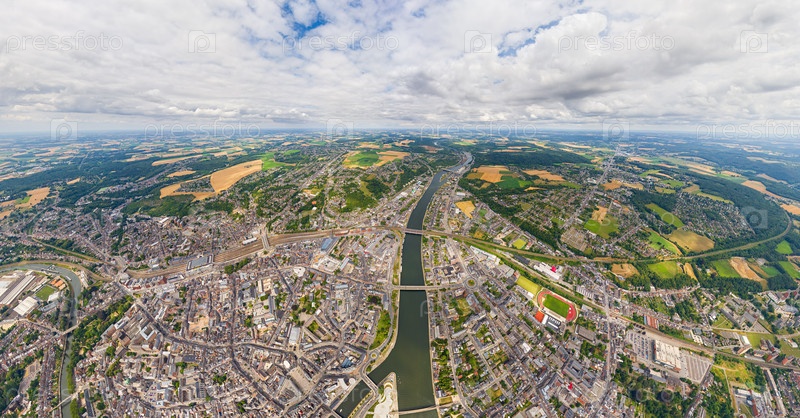 Намур, Бельгия.Панорама города.Летний день, облачная погода.Вид с воздуха