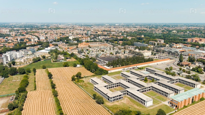 Парма, Италия. кладбище Делла Виллетта (Cimitero della Villetta). летний день, вид с воздуха