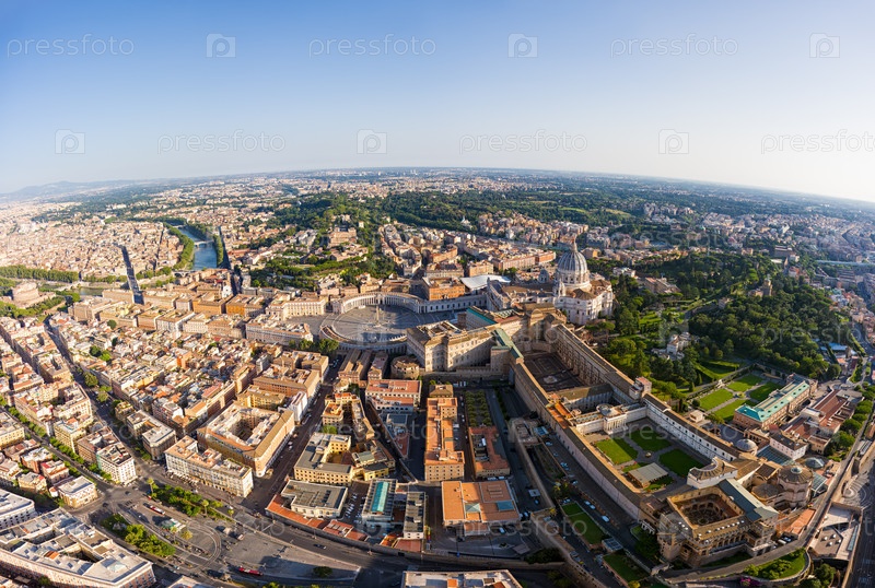 Рим, Италия. собор святого Петра - базилика Сан-Пьетро. панорама города летом утром. солнечная погода. вид с воздуха