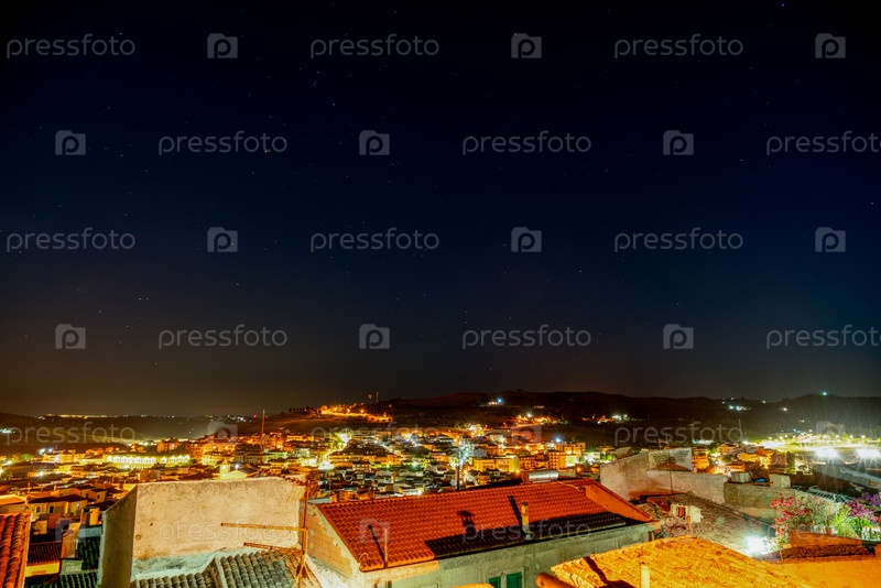 Пиетраперция, Сицилия, Италия Панорама города с крышами Ночь