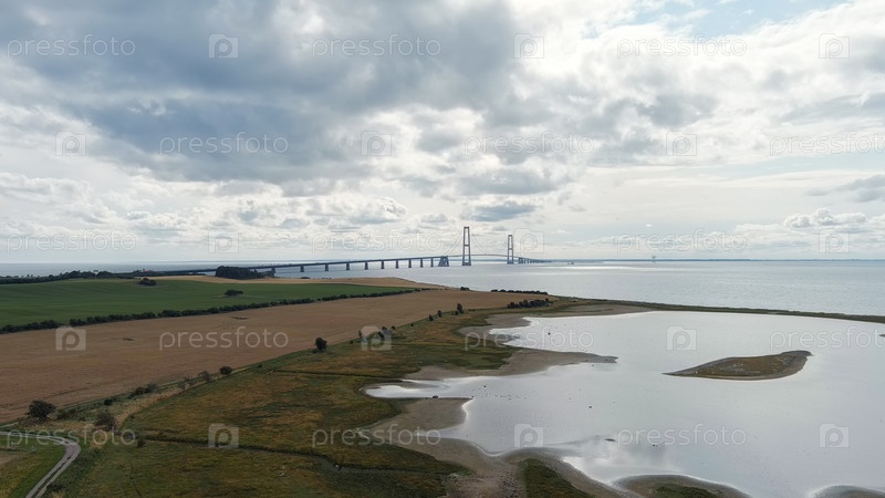 Корсер, Дания.Мост Большого пояса (Storebålt).Облачная погода с пробелами, Aerial View