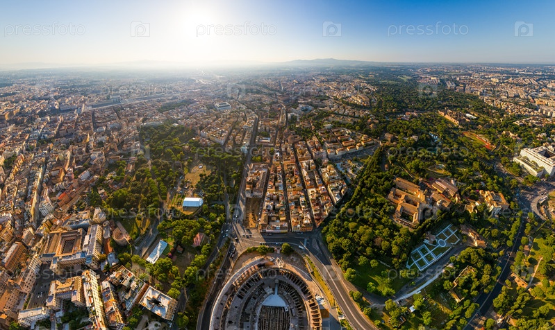 Рим, Италия. римский форум. город в пределах досягаемости. панорама города летом утром. вид с воздуха